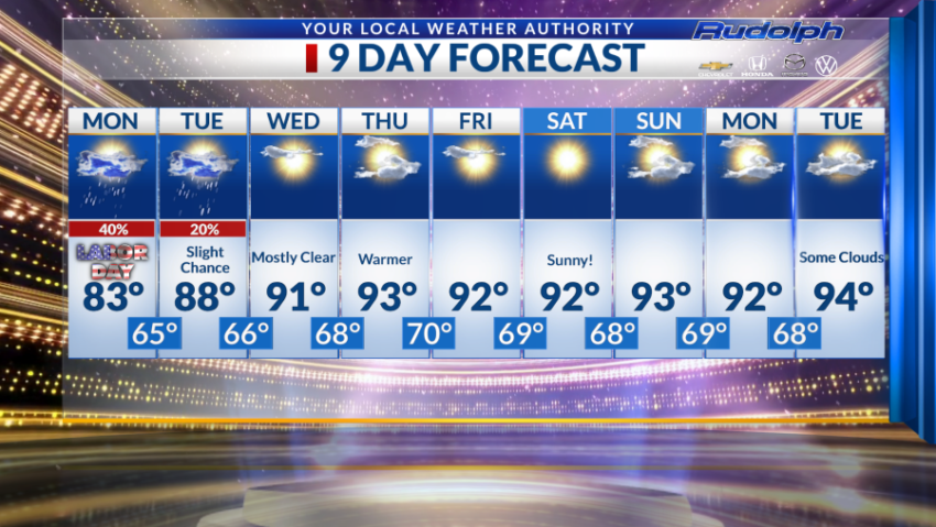 KTSM News – Labor Day storm chances, overnight lows dip into the 60s – Your 9-Day Forecast