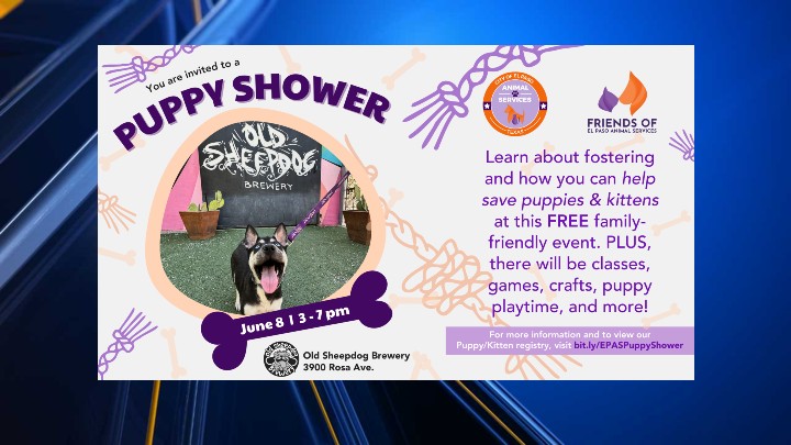 Well, El Paso Animal Services and its support group, Friends of El Paso Animal Services, is hosting a Puppy Shower from 3 to 7 p.m. Saturday, June 8, at Old Sheepdog Brewery, 3900 Rosa Ave.
