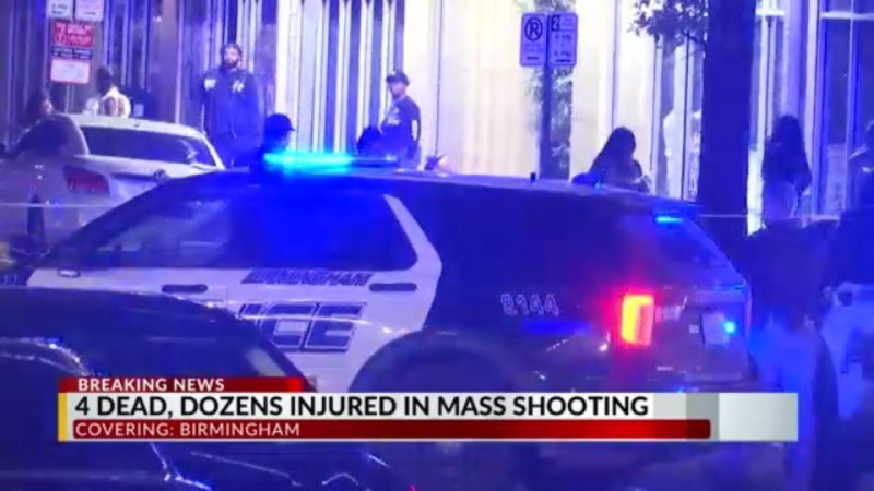 BIRMINGHAM, Ala. (AP) — A mass shooting killed four people and wounded 18 others in a popular nightlife area in Birmingham, Alabama, with many of the victims caught in the crossfire, police said early Sunday. Authorities asked the public for tips as they searched for the shooters.