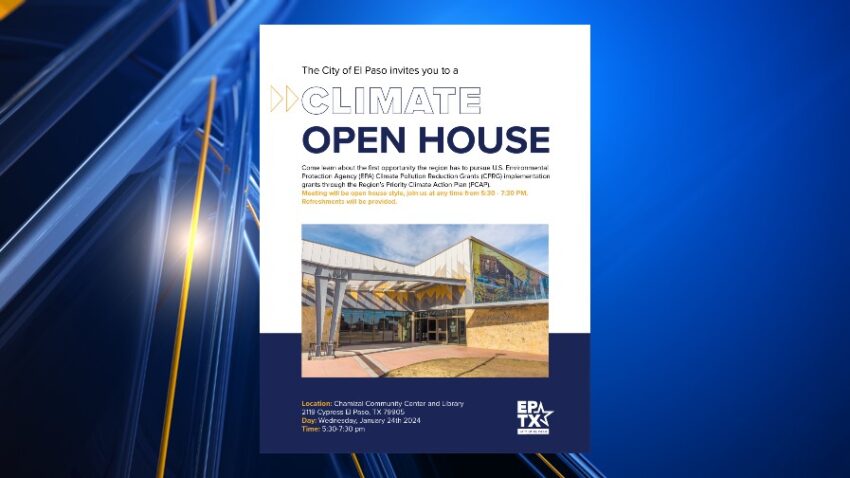 EL PASO, Texas (KTSM) – The community is invited to attend an “open house-style” public meeting to learn about how the region is able to pursue federal funds through the U.S. Environmental Protection Agency (EPA) Climate Pollution Reduction Grants (CPRG) implementation grants, according to a press release sent by Barracuda PR.