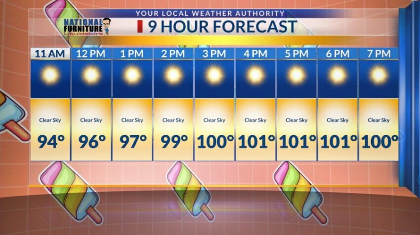 KTSM News – Monday 9-hour forecast: Triple digits paired with breezy conditions
