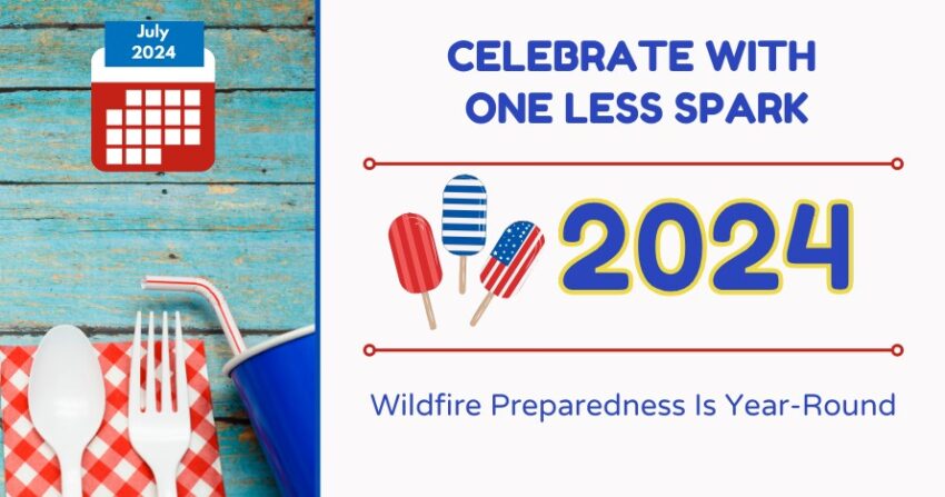 This month’s “Wildfire Preparedness Is Year-Round” message is “Celebrate with One Less Spark.”
