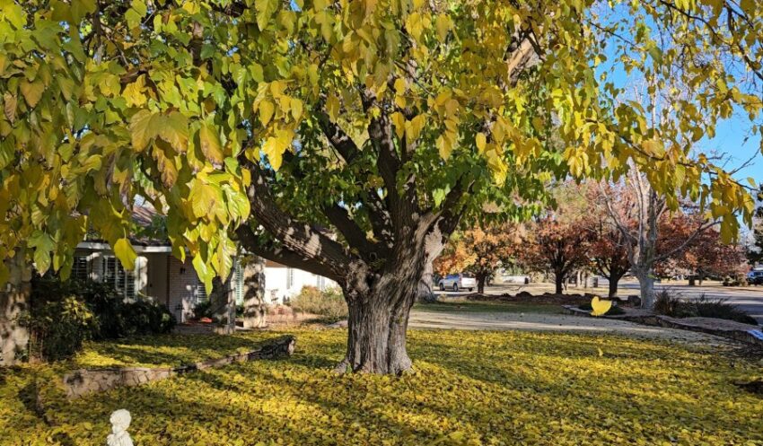 Once a year, we wake up to an almost fairytale-looking site: our Mulberry tree is “snowing” leaves. On Sunday morning, the temperature dropped to 19 in the valley. That sudden and extreme cold is the trigger that causes the leaves to fall. It’s beautiful, but we all know what comes next… Leafmageddon!! Yes, it takes about 70 big black bags to round up all the leaves. Your warmer forecast is below…