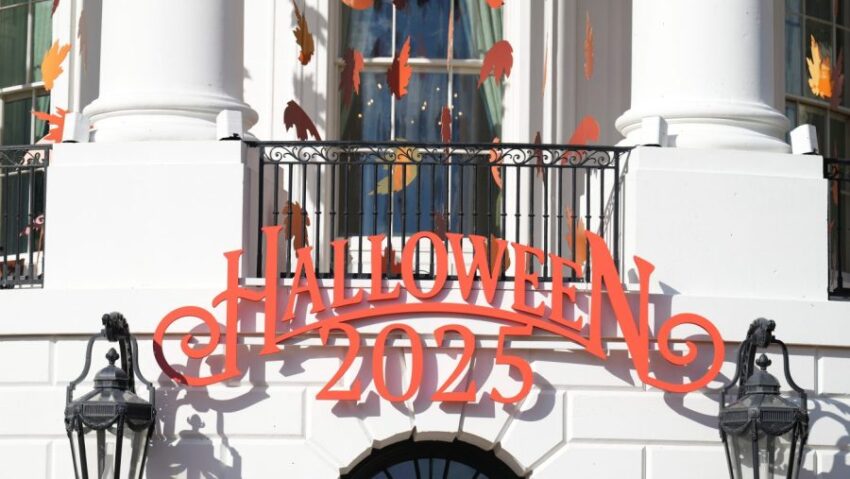 The White House is decorated for Halloween before President Donald Trump and first lady Melania Trump participate in Halloween at the White House, Thursday, Oct. 30, 2025, in Washington. (AP Photo/Alex Brandon)