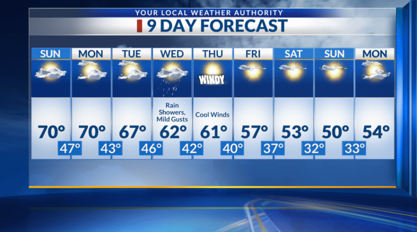 EL PASO, Texas (KTSM) — Happy Saturday, Borderland! Hopefully, you are enjoying your weekend and the beautiful, comfortable weather. The warmer-than-average temperatures and dry air will continue into the workweek, with a shift happening on Wednesday. Saturday’s low will drop to around 45 degrees and accompany partly cloudy skies. Winds will blow around 3-5 mph. Sunday will have similar light winds and temperatures as […]