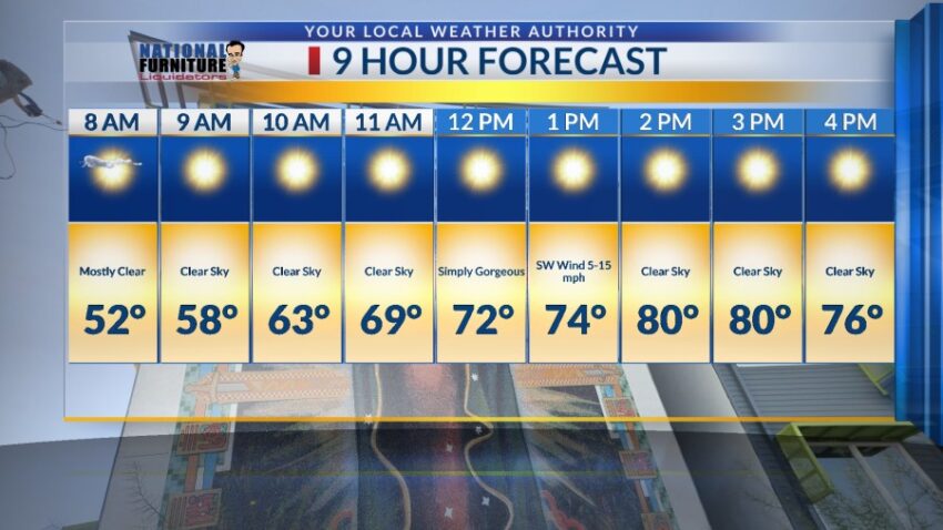 We were a couple degrees colder this morning thanks to the very light winds. The low was 39 at the airport, just above freezing in the valley. This Veterans Day really turned into a lovely afternoon with a high of 75. We move up into the 80s for a few days. Here’s your exclusive 9-Hour […] Read: Read More