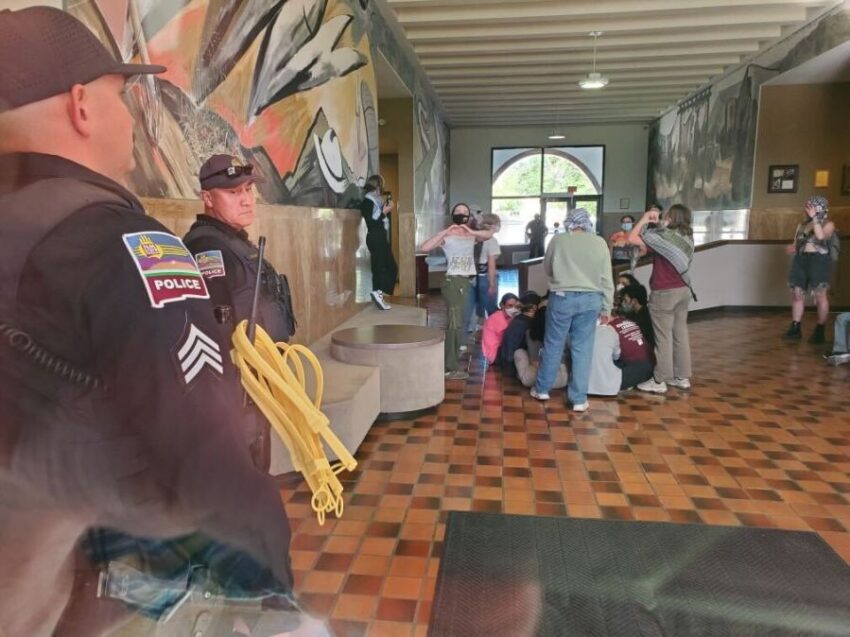 In a video captured by KRWG News 22/Noticias 22, which is an NMSU student-run newscast, a person can be seen being taken into custody after participating in a “sit-in” at the lobby of Hadley Hall.