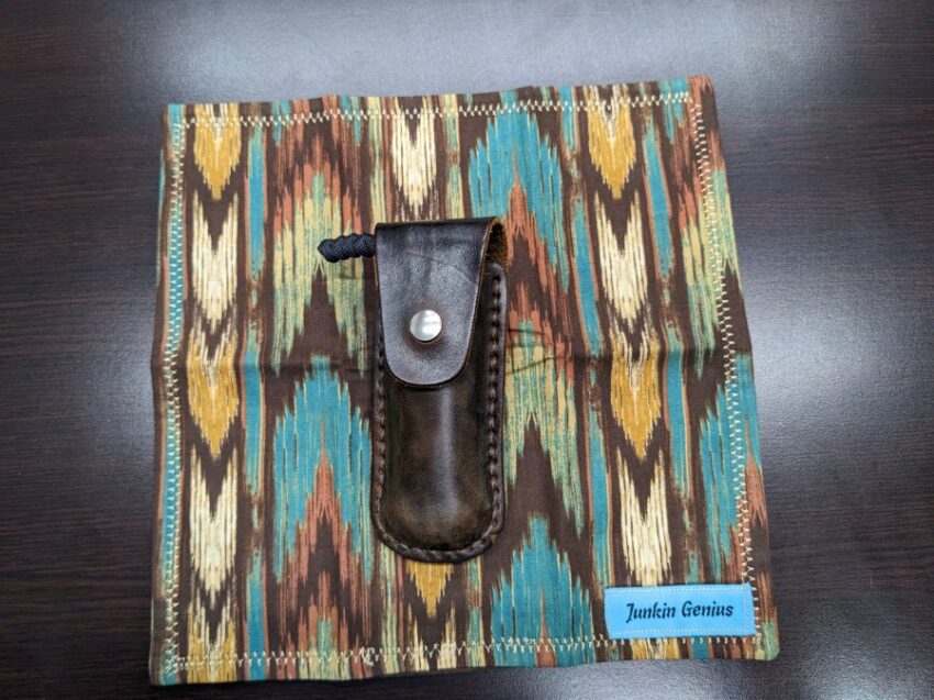 Also, I wanted to give a shoutout to my good friends at Junkin Genius. A couple of months ago, they sent me two hanks to check out. I’ve been carrying the camping theme hank with a great flannel backing almost every day.