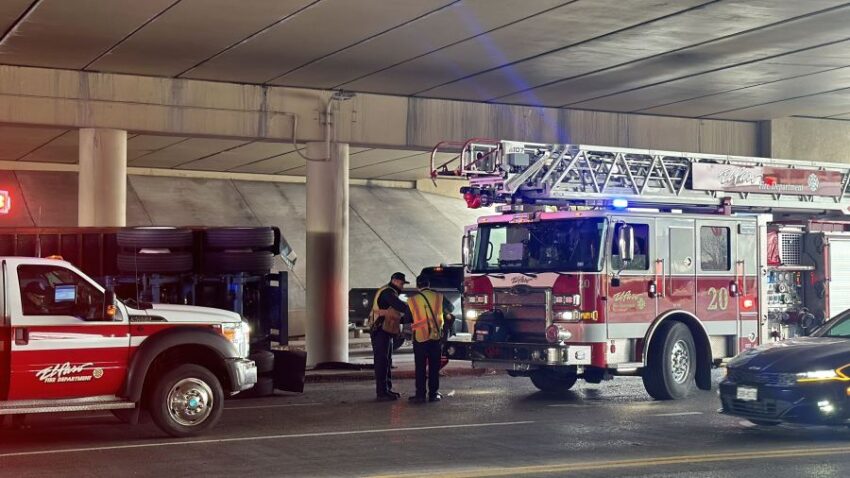 EL PASO, Texas (KTSM) — A semi-truck rolled over and closed several lanes at the underpass on Gateway East at Hawkins on Wednesday, Jan. 24.