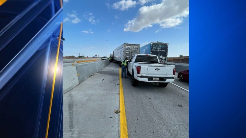 EL PASO, Texas (KTSM) — A semi-truck veered into a barrier Friday morning, Sept. 6, on I-10 West by Transmountain, according to TxDOT El Paso.