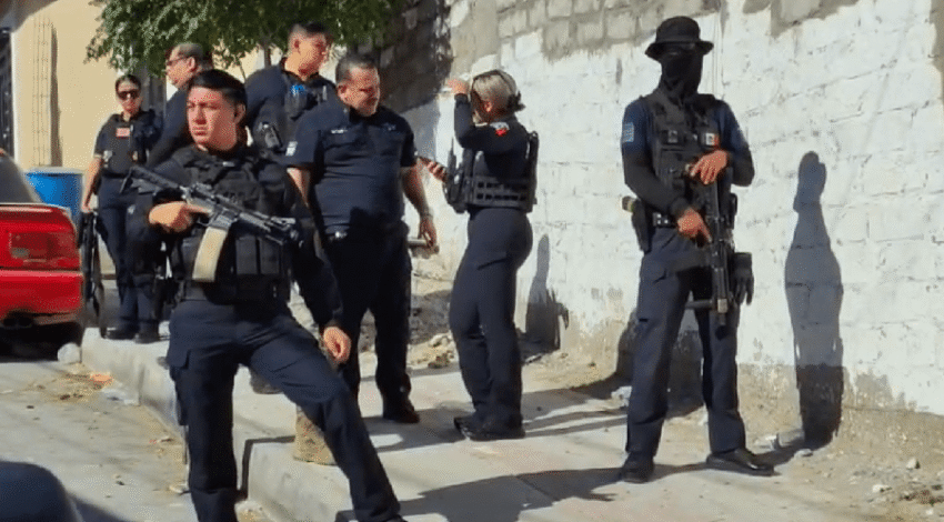 Images taken by Border Report news partner ProVideo show multiple municipal officers carrying rifles walking up and down the neighborhood and police units with flashing lights parked on the street.