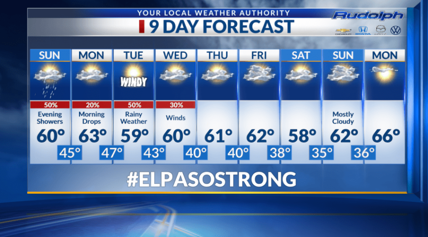 EL PASO, Texas (KTSM) — Expect rain showers early in the week in the Sun City!