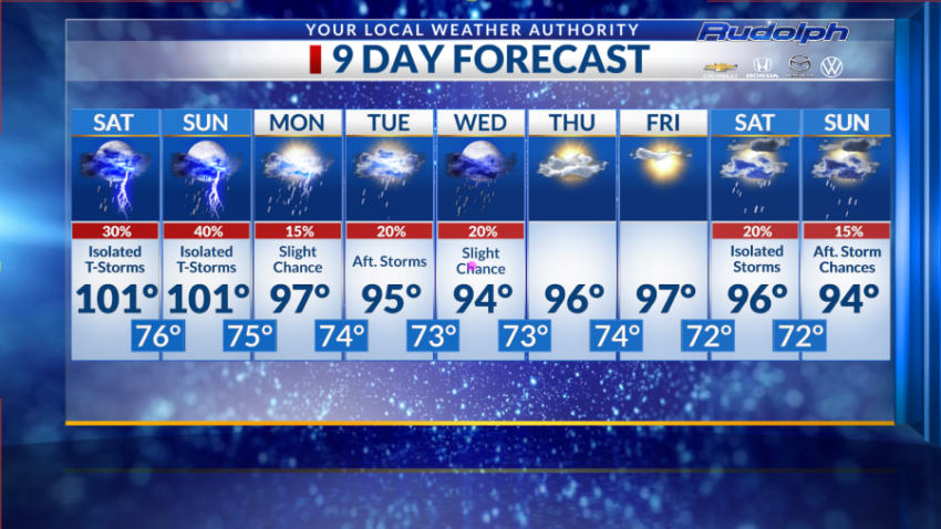 Saturday begins with partly cloudy skies and a high forecasted to reach 101 degrees.