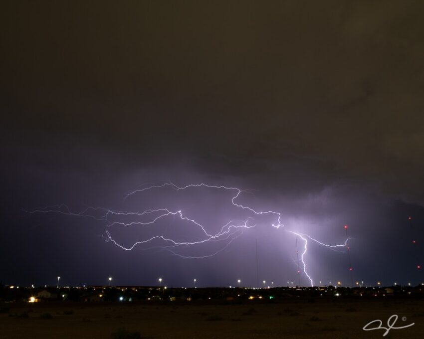 The atmosphere stabilized nicely today. We saw a few isolated showers, but skies should clear up pretty early. Weather Watcher Andrew Luna sent in this incredible shot of lightning from the powerful storms two nights ago in the Pebble Hills and Saul Kleinfeld area of the east side. We are not likely to see scenes like that again until Tuesday night.