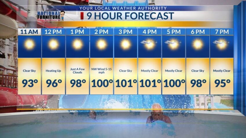 KTSM News – Tuesday 9-hour forecast: Another very hot day to head to the pool