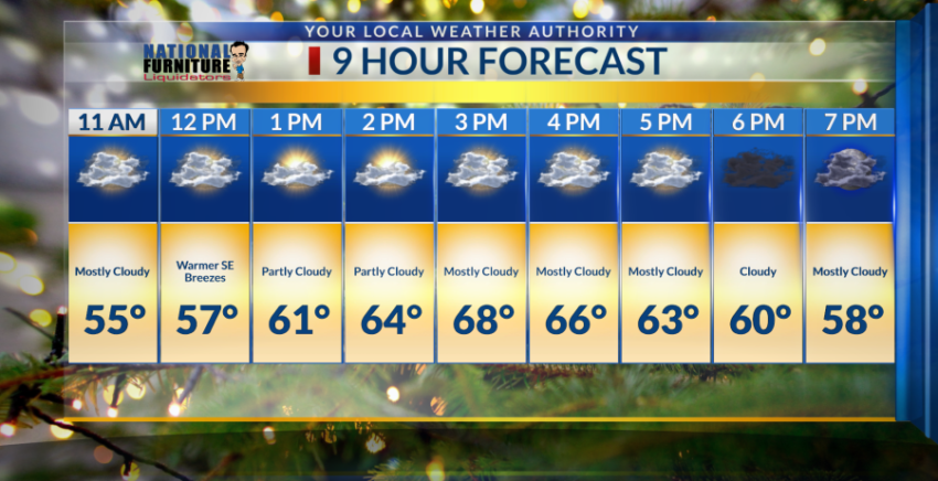 However, starting at noon we’ll continue to feel upper 50s and mid 60’s. We’re forecasting a high of 66 degrees in the Sun City but by 3 p.m. we’re predicting to be at the peak of 70 degrees. 🌥️