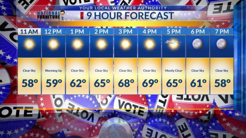 EL PASO, Texas (KTSM) -If you’re heading out to the polls and vote Tuesday morning, we’re getting a cold start to Election Day as temperatures are expected in the upper 30s with light winds.