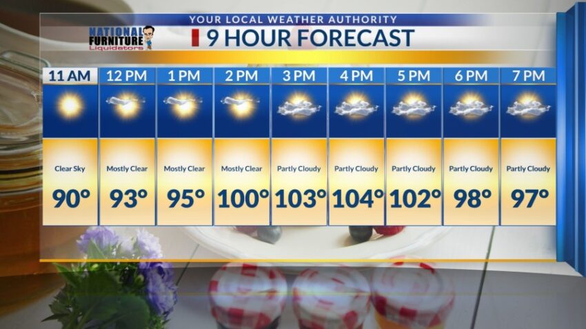 EL PASO, Texas (KTSM) – It’s Tuesday and we’re forecasting triple digits paired with partly cloudy skies. While hot temperatures will surface across the Borderland, we’re expected to reach a high of 104-degrees.