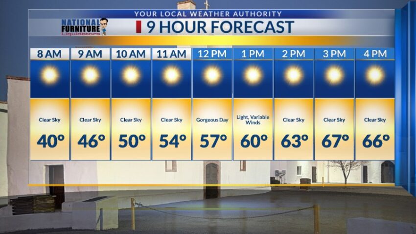 Saturday’s high was 67, which was a full 8 degrees above normal. Today was slightly cooler at 64, but still 5 degrees above normal. Hang on to your polo shirts because temperatures are about to move up into the 70s!! Here’s your exclusive 9-Hour Forecast for Monday with your 9-Day Forecast below. TONIGHT: The skies […] Read: Read More