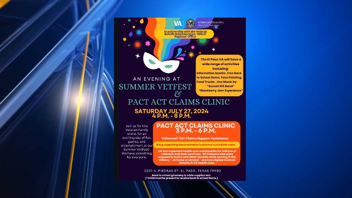 The El Paso Veterans Affairs Health Care System and the Veterans Benefits Administration Waco Regional Office are teaming up to host a Summer VetFest and a PACT Act Claims Clinic.
