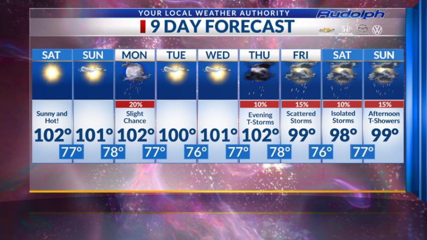 Additionally, Thursday is also the last day we forecast triple digits for the remainder of the forecast.