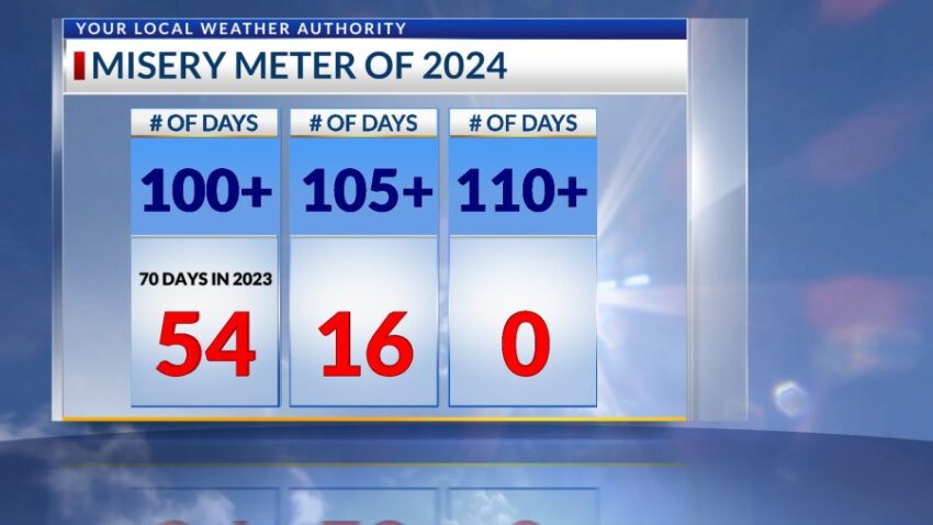 Sunday may be the last time we add to the Misery Meter this year. Sunday’s high was 101, but the high today was only 98!! The ridge of high pressure is gone, and the monsoon moisture has returned. That means much cooler days this week. We ended up with 54 triple-digit days, which is 16 fewer than last year’s 70 days.