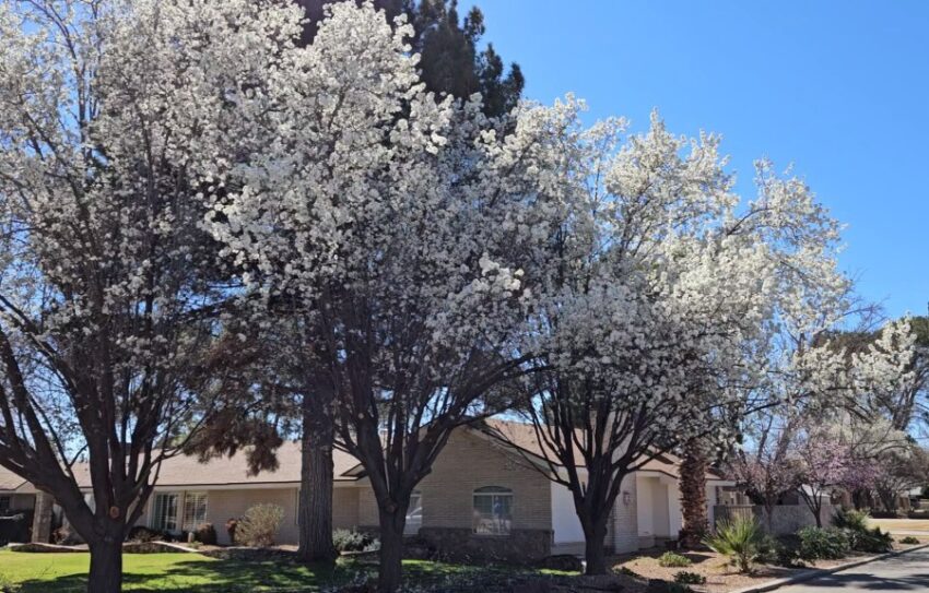 Spring does not officially start until March 19, but nature forgot to tell the trees. My flowering pear trees exploded with white flowers a few days ago. Tomorrow, I hope the pretty flowers can hang on to the tree in the gusty winds.