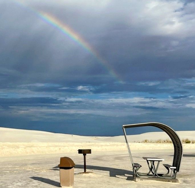 Weather Watcher Sarah Tanski sent in this gorgeous rainbow at White Sands National Park yesterday. Get your phones ready because tomorrow will usher in potentially strong t-showers with the threat of locally heavy rainfall as well as small hail. A cool front combined with a series of upper level disturbances could strengthen the storms.