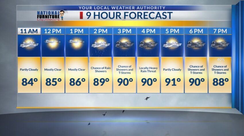 EL PASO, Texas (KTSM) — Happy hump day! Another day with chances of showers and thunderstorms later this afternoon. Expect a high of 91-degrees by 5 p.m.