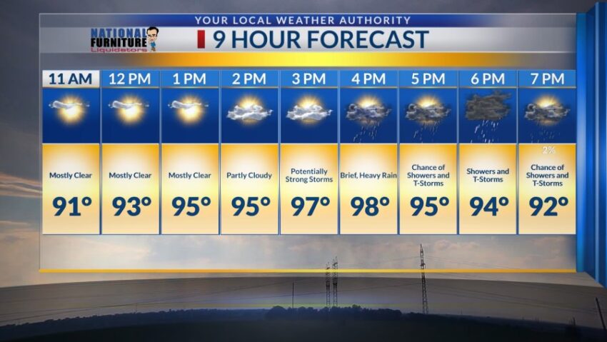 By tonight expect southeast winds to reach up to 20 mph and brief heavy rain to begin around 4 p.m. Showers and thunderstorms will linger in the evening around dinner time.