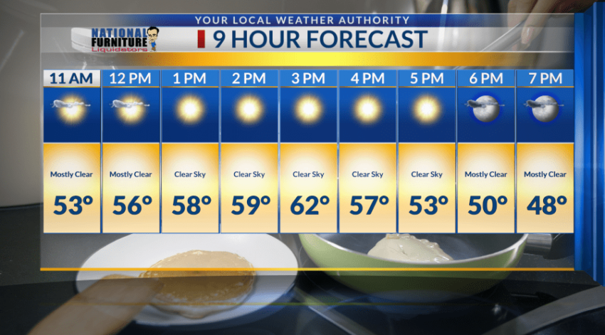 While temperatures continue to drop in the 30s at night, we will continue to see 60 degrees in our forecast. Starting at 11 a.m. we’re forecasting 53-degrees and 62-degrees by 3 p.m. ☀️