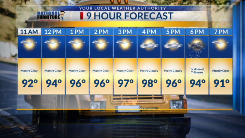 Tonight, temperatures will slightly drop in the upper-70s with winds shifting southwest. Although we are not looking triple digits today expect them to linger tomorrow and this weekend. Stay hydrated and dress accordingly to the hot temperatures.