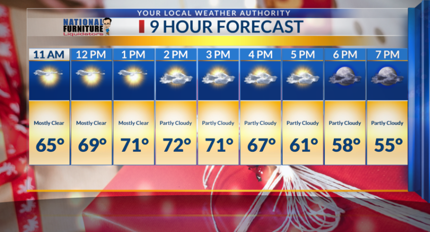 If you haven’t gone Christmas shopping and you’re planning to go today, we’re starting the day with mid 60s at 11 a.m.