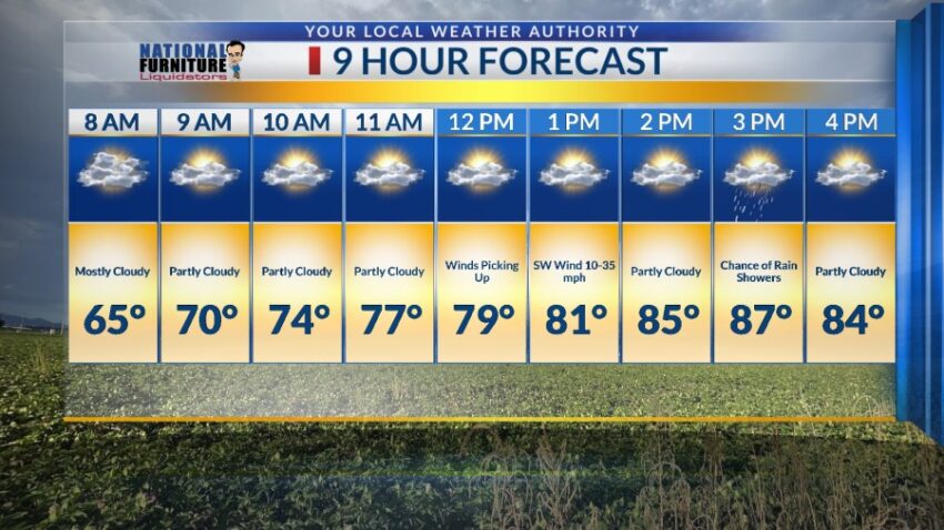It’s been a while since we’ve seen some clouds, and tomorrow, we may see more than just clouds… some showers as well. Here’s your exclusive 9-Hour Forecast for Thursday with you 9-Day Forecast below.