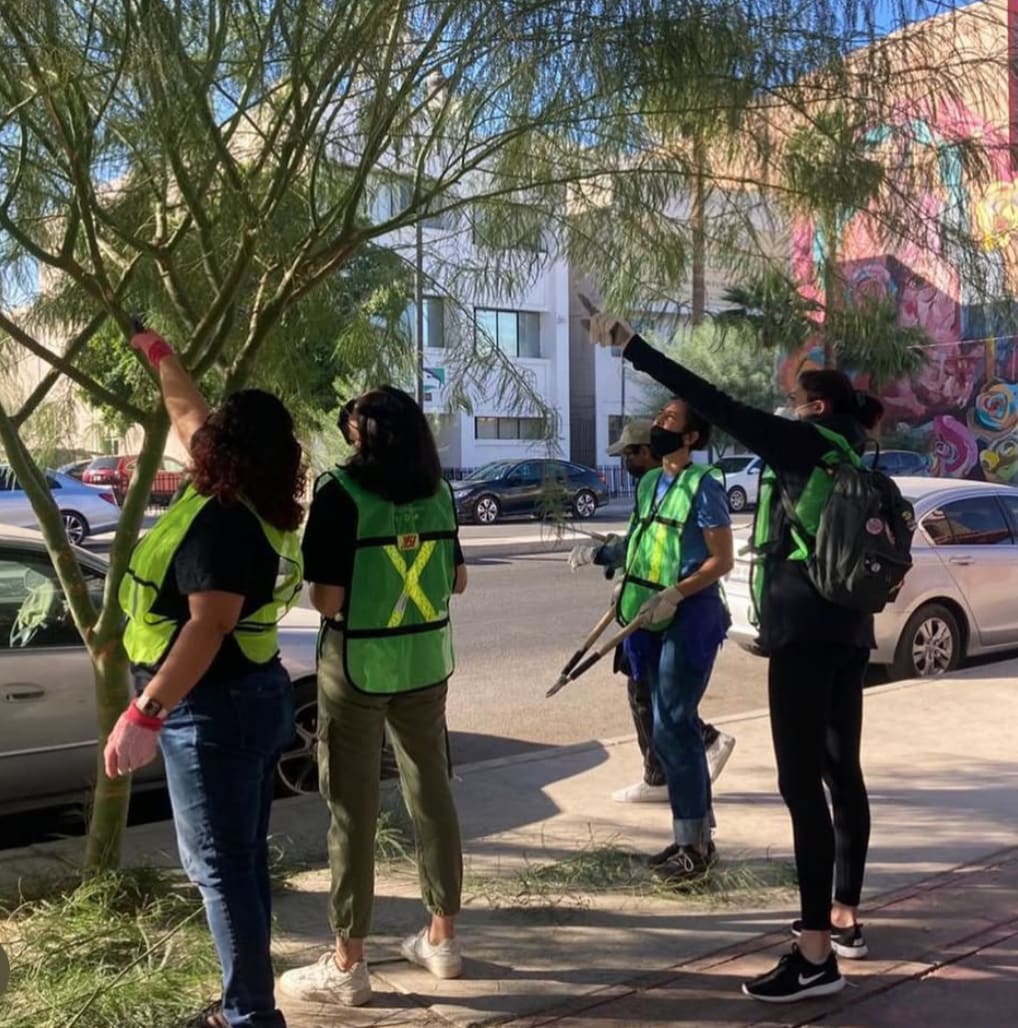 We got in contact with the mayor and asked for permission to plant trees—this time native paloverdes. We did it all: sourced the trees, broke the sidewalk, and planted the trees. Now the trees have grown in, and in the spring the street is completely yellow [with flowers]. We never had a symbol of the change of the seasons like that.