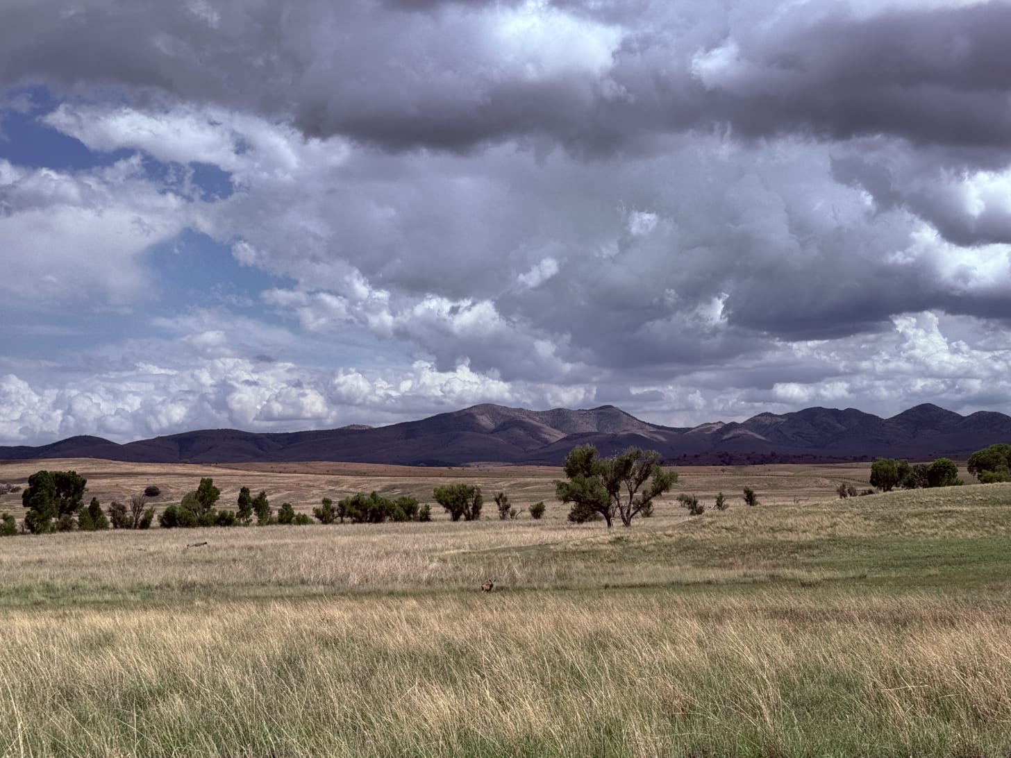 In mid-August, during what should have been the peak of the summer monsoon season, we were experiencing what southern Arizonans despairingly call a “non-soon.” The normally lush green grasslands of the San Rafael Valley were brown, crisp, and dry. Red dirt roads were swept up into the sky by dust devils dancing across the valley floor, their funnels twisting high into the air.