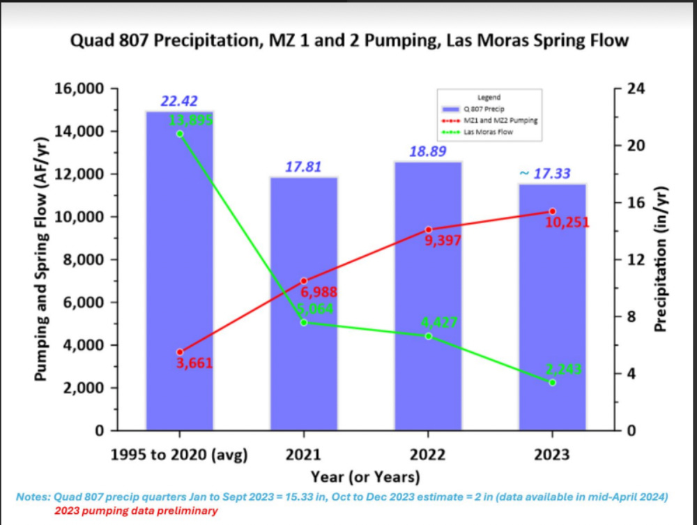 With all the volunteer hours spent by district board members and citizens, and staff hours and paid scientists and software and instrumentation—and paid lawyers—one would think it would be possible to save Las Moras Springs.