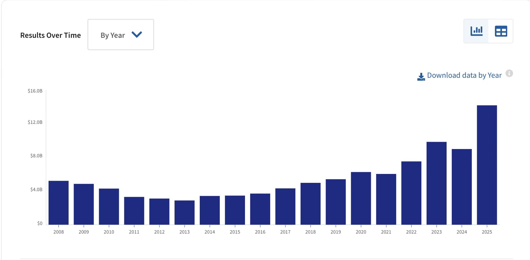 In 2025, CBP and ICE signed 7,331 contracts worth $14.2 billion. When I first investigated this, I figured there would be an increase over 2024, given all that had transpired during Donald Trump’s first year back in office. But I wasn’t sure, since Joe Biden’s presidency, from January 2021 to January 2025, had signed a record number of contracts. The total for his four years was $32.3 billion. The Democratic president had topped his predecessor (the first Trump presidency) by a startling $11 billion. In 2023, he set the record for most contracts by any president for one year at $9.8 billion.