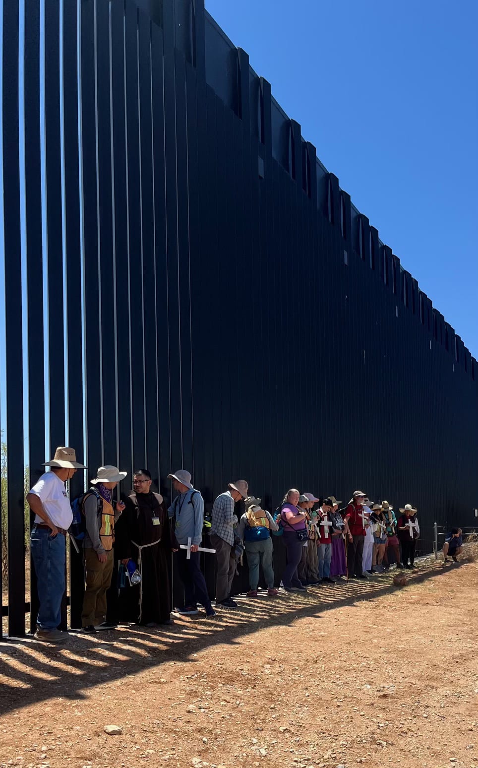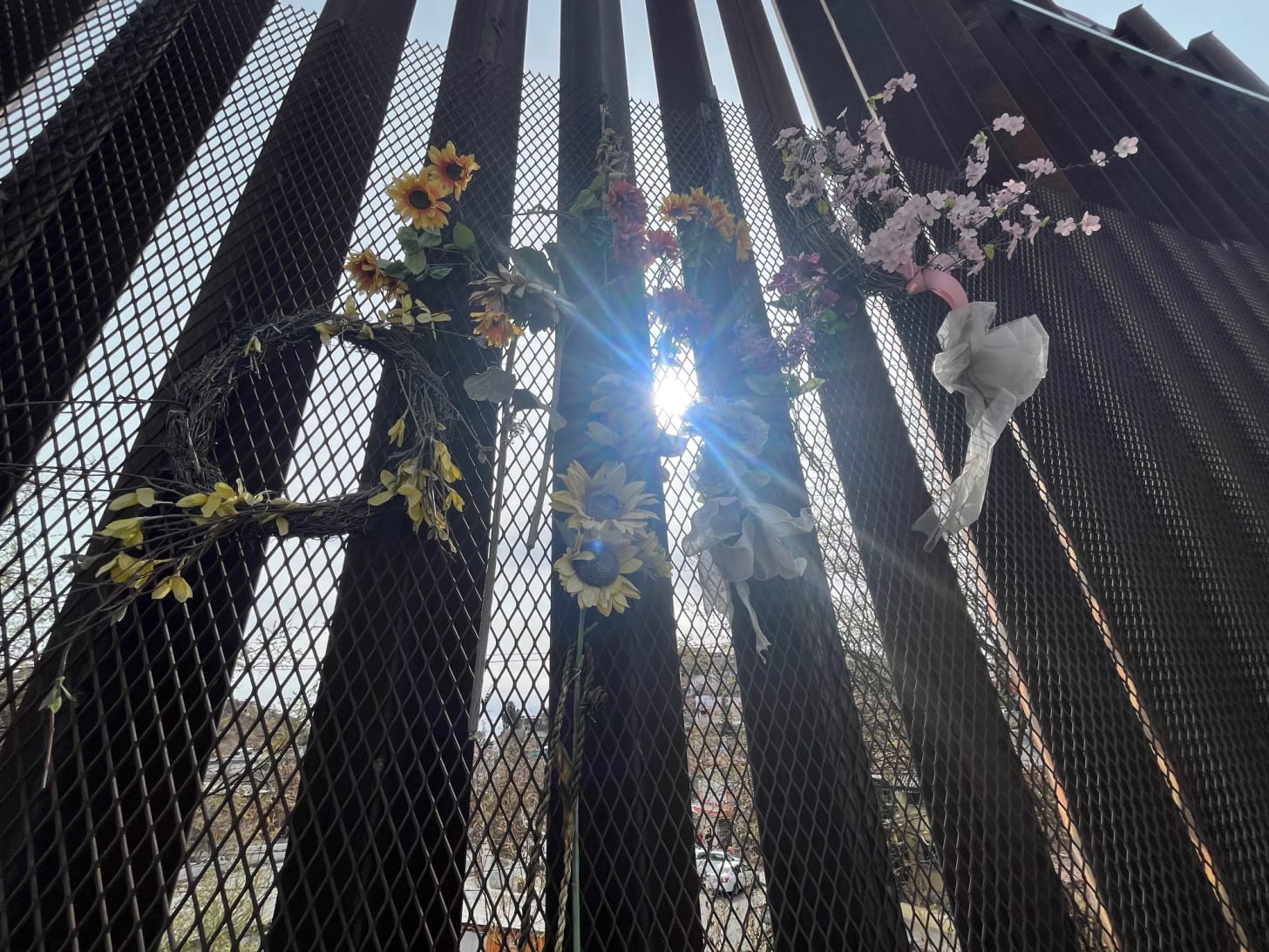 As I walked along the border on Inauguration Day, my first photo was of these flowers (above) that adorn the 20-foot wall in Nogales, Arizona. They are a memorial to José Antonio Elena Rodríguez, killed by Border Patrol in October 2012.