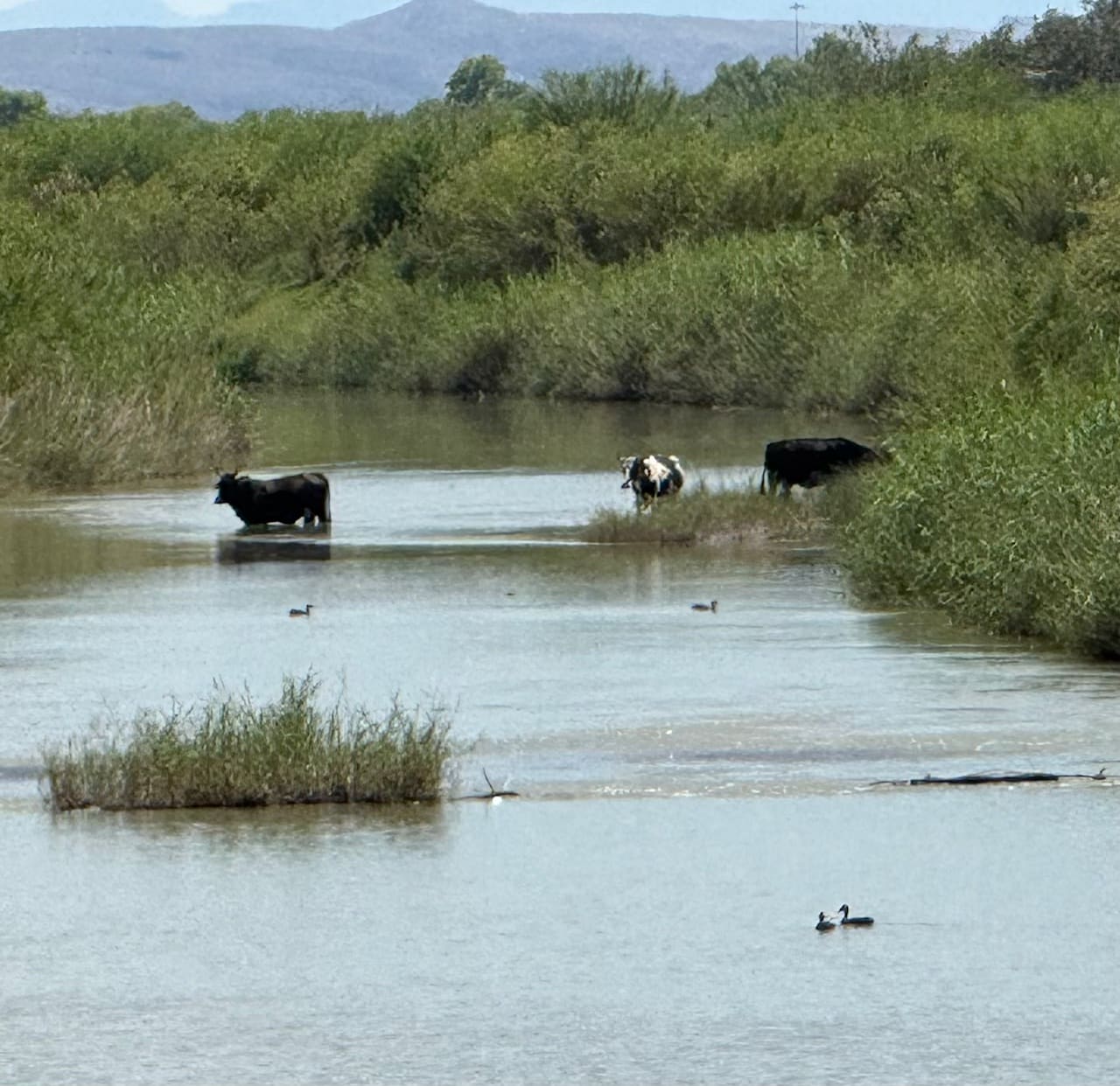 Cows without documents cross the Rio Grande at La Junta de los Ríos near Presidio, Texas, and Ojinaga, Chihuahua.