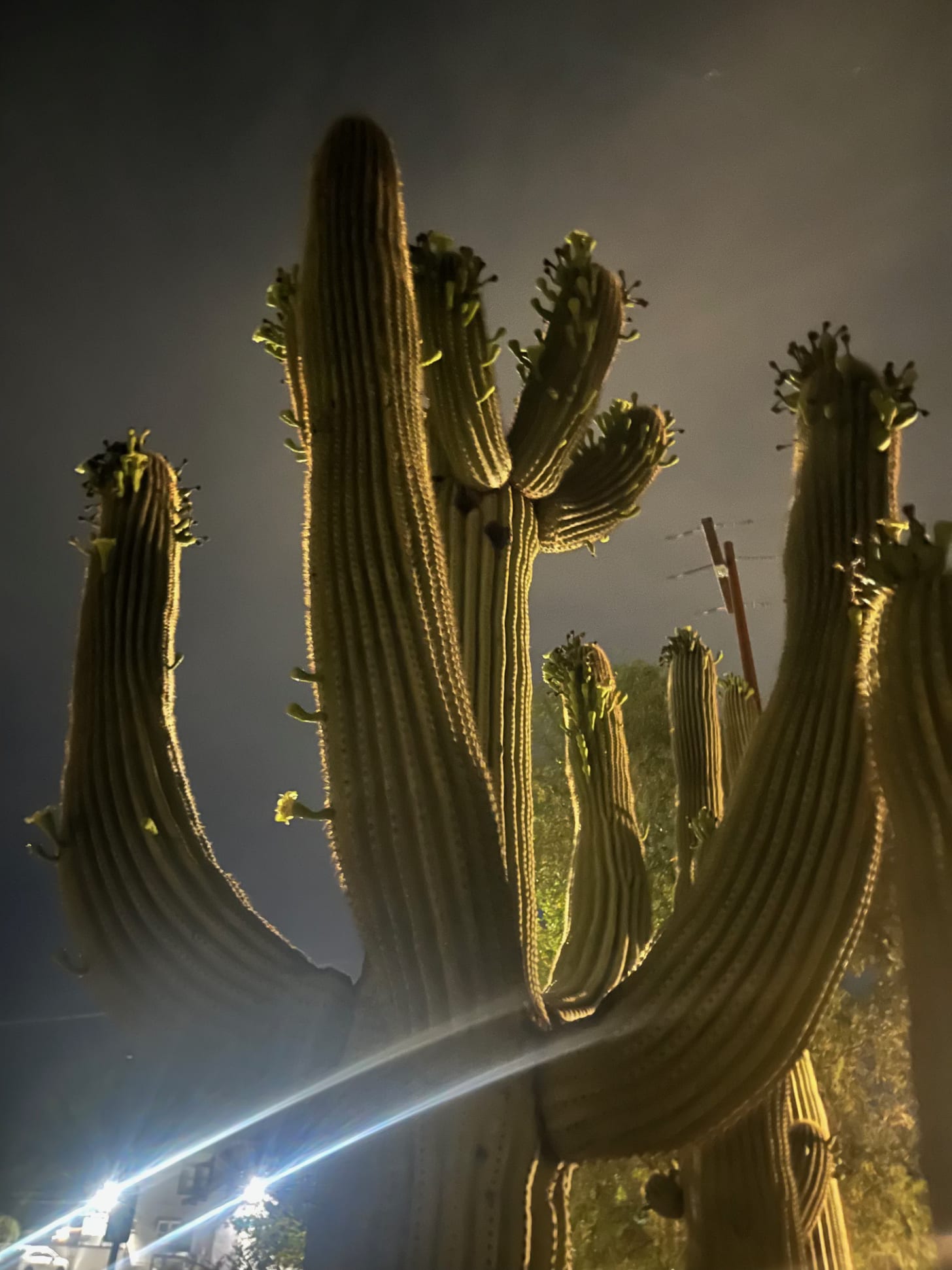 A saguaro with fruit in June in Tucson.