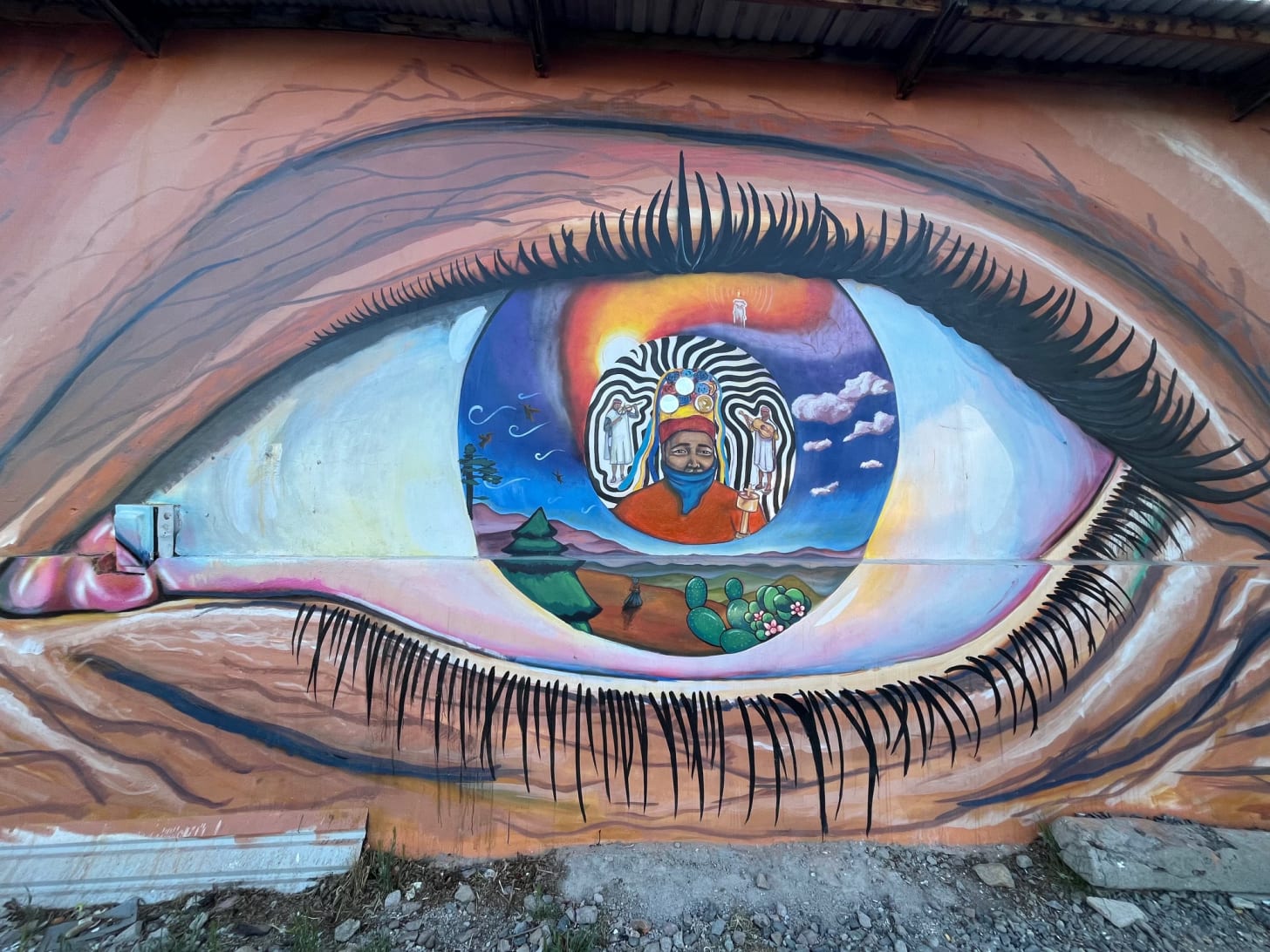 A mural in Creel, Chihuahua, by Adán de la Parra. In March, I was in the Sierra Tarahumara in search of the headwaters of the Río Conchos, the most important river in Chihuahua, which is also a conduit to deliver water to the United States under the 1944 Water Treaty. An eye holds a thousand universes, a thousand possibilities.