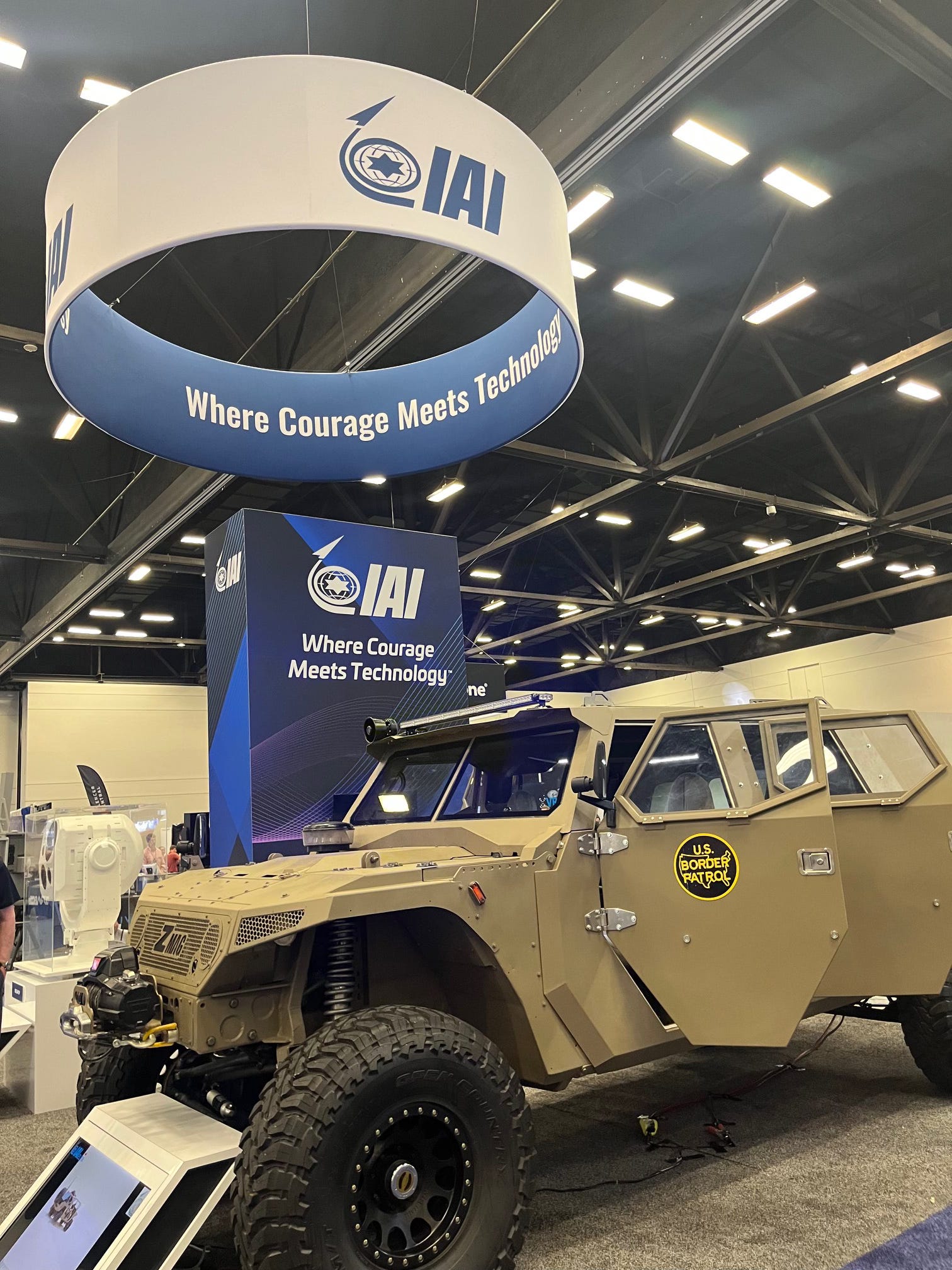 Once again, Israeli companies stood out at the expo this year. These included Elbit Systems, a company that has built many surveillance towers in the U.S. borderlands, as we have covered here at The Border Chronicle. And Israel Aerospace Industries was there, offering a demonstration of a Border Patrol vehicle that looks like it might be patrolling the Gaza Strip (which is a “good laboratory,” as an Israeli brigadier general put it in El Paso many years ago at another border convention I attended). Much of this technology is first tested in the Palestinian Occupied territories.