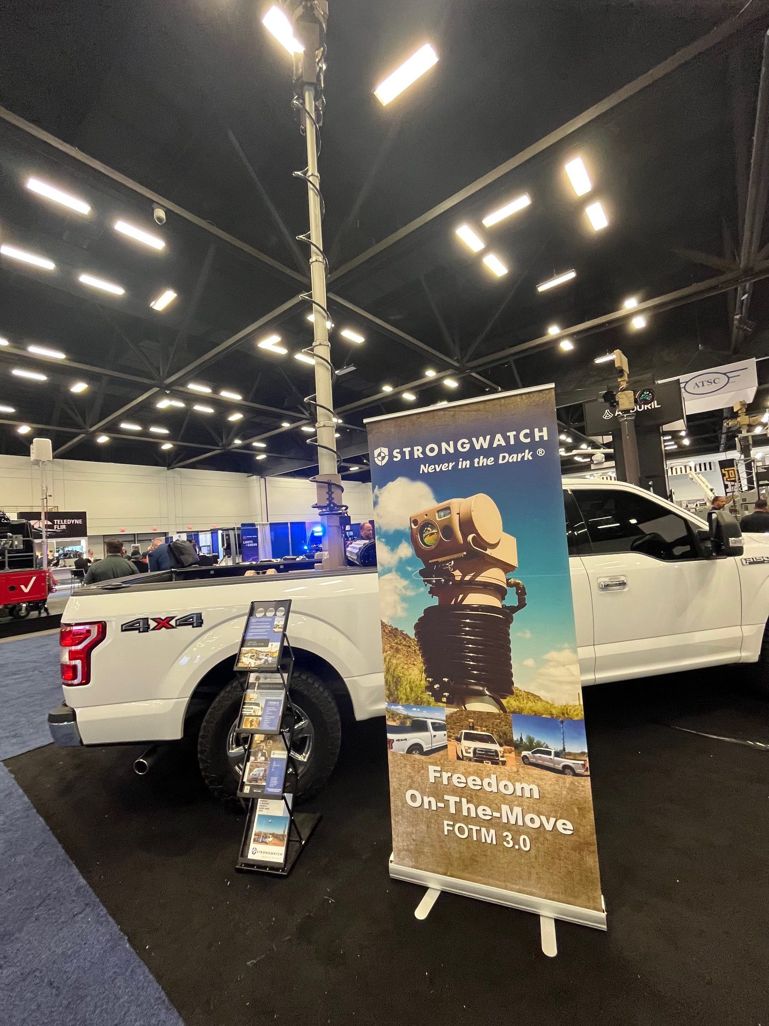 And speaking of many years ago, I was surprised to see the company StrongWatch’s Freedom-on-the-Move, a mobile surveillance system that was one of the first technologies I wrote about when I attended my first Border Security Expo in 2012. That was the year when No Protesting Allowed signs were posted all over the Phoenix Convention Center (where the event used to be held).