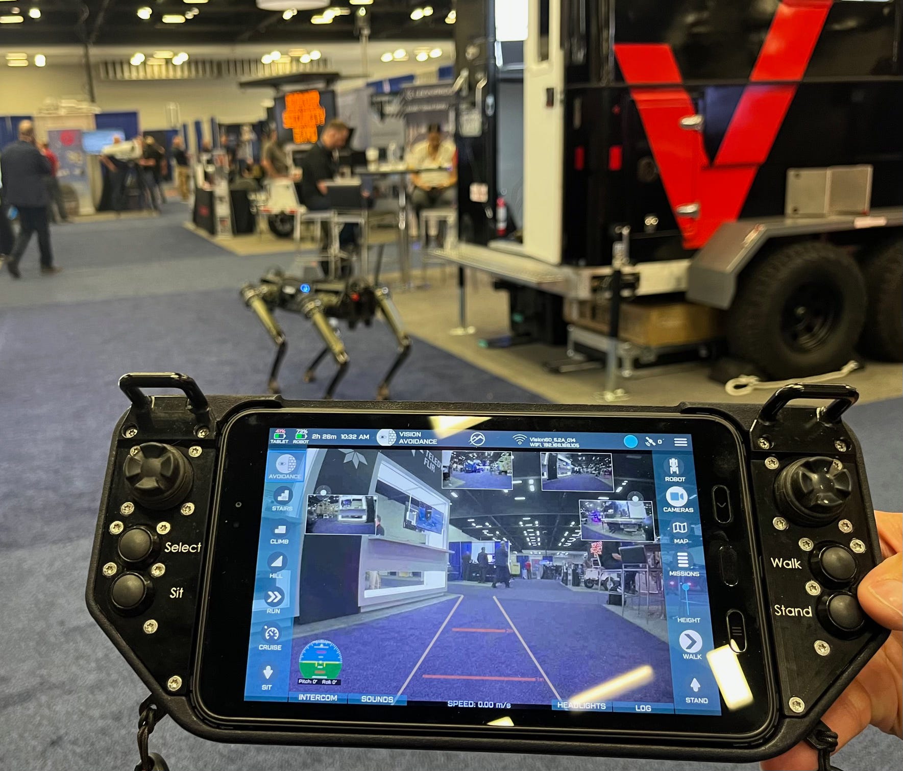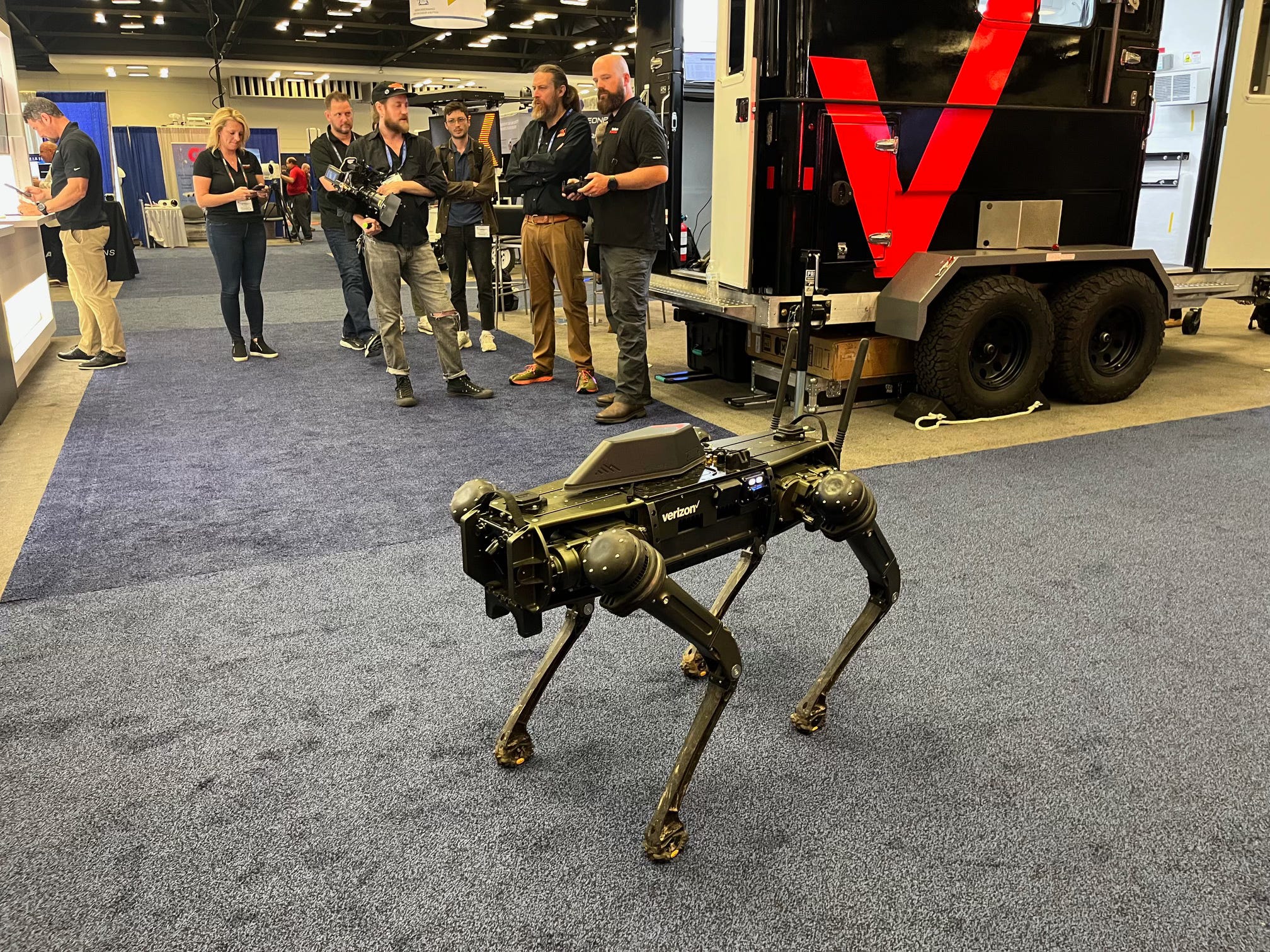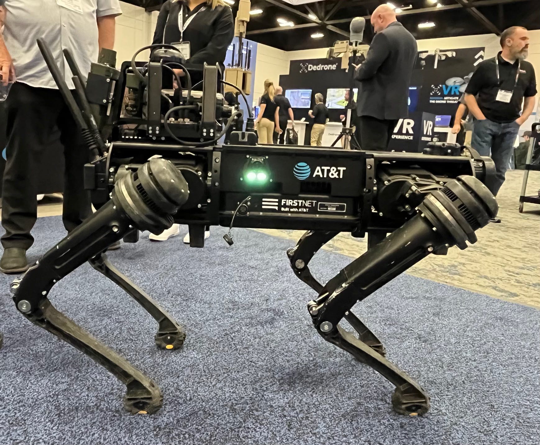 A little later I ran into another robotic dog (second photo, this time AT&T) wandering the floors of the expo. The use of UGVs is definitely something to keep an eye on.