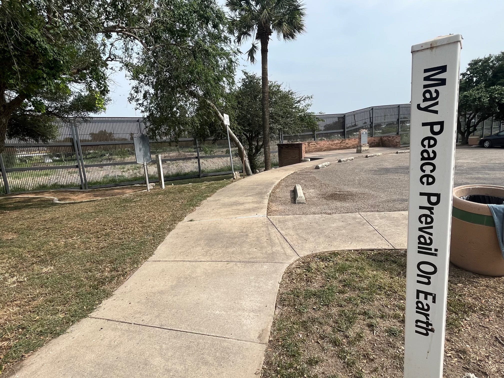 The border has the feel of a war zone. There is a feeling of always being watched. But at least this sign in Brownsville keeps a sense of optimism. I myself will choose to embrace this optimism, even as it is placed in front of Brownsville’s version of the border barrier. It’s hard to see, but further down by the river is Operation Lone Star’s razor wire. Yet it declares: May Peace Prevail on Earth. And in the borderlands, I have met many more who share this sentiment than not.