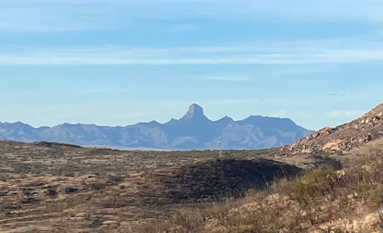 After driving around and talking to several such groups, we went to the top of the hill, the only place where we could get a cell signal. Gail called 911. From where we stood, looking out at Fresnal Peak, which Trump blew to smithereens for wall construction, was (besides that unfortunate fact) a view of one of the most beautiful places in the world. Mountain ranges surrounded us in all directions like waves in an ocean—in Sonora, in Arizona—crisscrossing and in constant disrespect of the human-made border. In the distance we could see the sacred Baboquivari Peak of the Tohono O’odham. You could also see a scope truck operated, according to Gail, by the National Guard, and an Integrated Fixed Tower—one of 50 or so in Arizona constructed by the Israeli company Elbit Systems—staring toward Mexico.