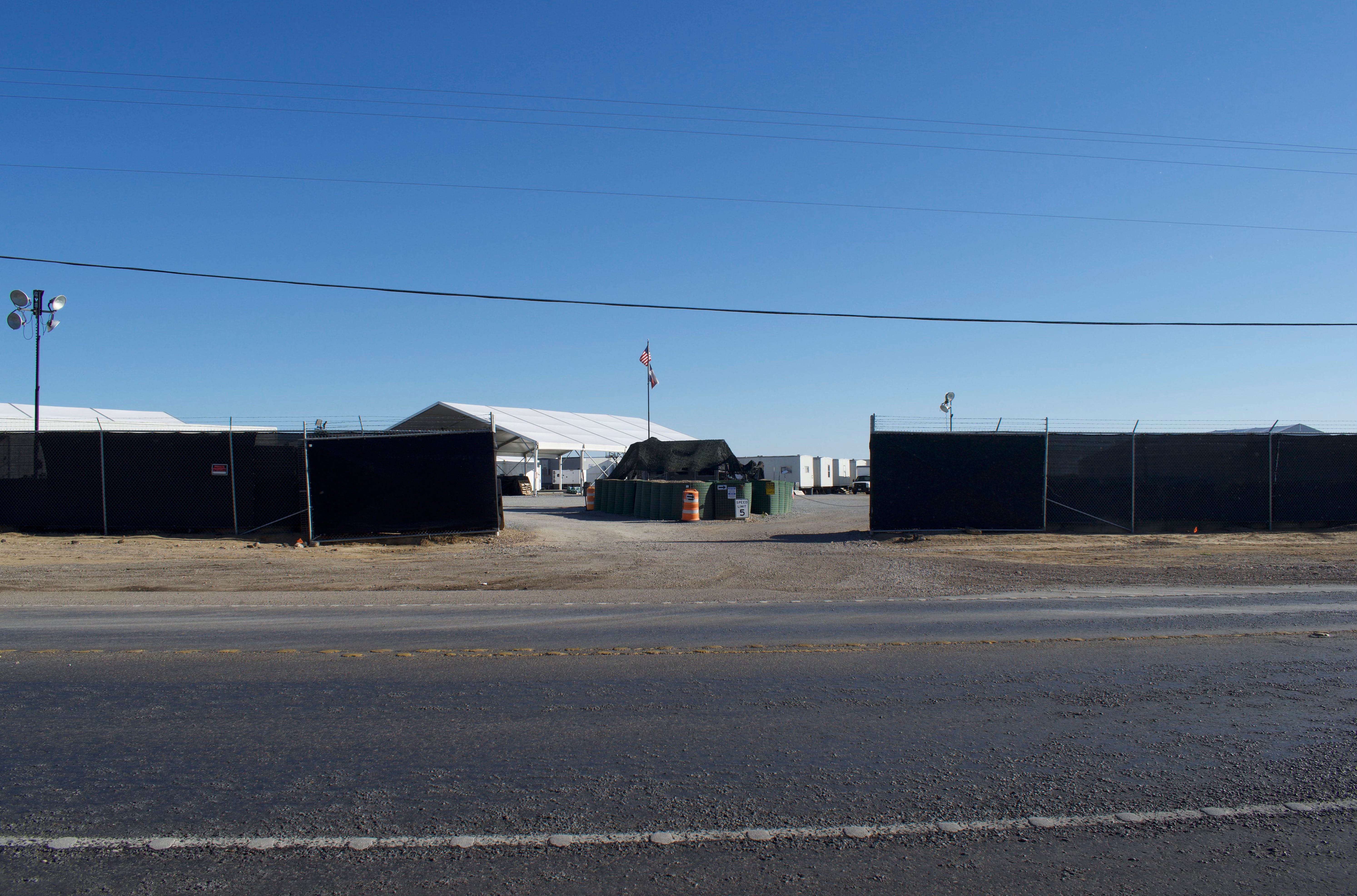 MEYER AND THOMAS: The massive deployment of National Guard troops to Texas border areas as part of Operation Lone Star has necessitated the creation of new military installations, often situated on large plots of unused land on the outskirts of town. To meet the (ostensibly) temporary housing needs in these camps, the Texas Military Department has contracted with private companies like Team Housing Solutions, whose website displays photos of its facilities for Del Rio’s Camp Amistad, which could be confused for the kinds of photos one would expect to see in advertisements for a private apartment complex. Like the Del Rio camp, the installation in this photograph—located on the outskirts of the town of Zapata—was created under contract with a private housing provider, in this case Storm Services. Unlike the Del Rio camp, however, there is no sign identifying this massive military installation that now operates out of this Texas town.