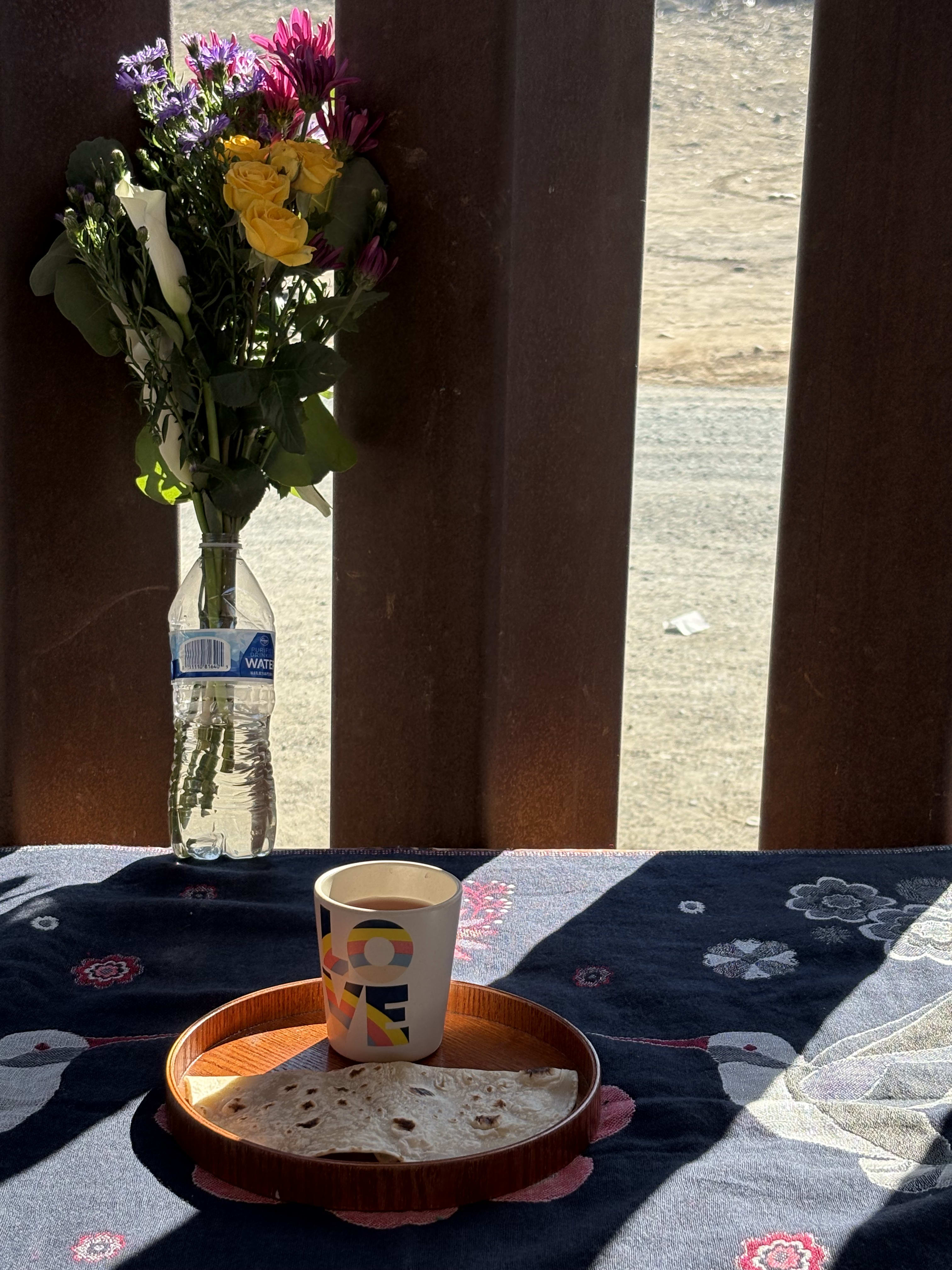 The sacrament at the border wall church in San Diego in February 2025. (Photo credit: Melissa del Bosque)