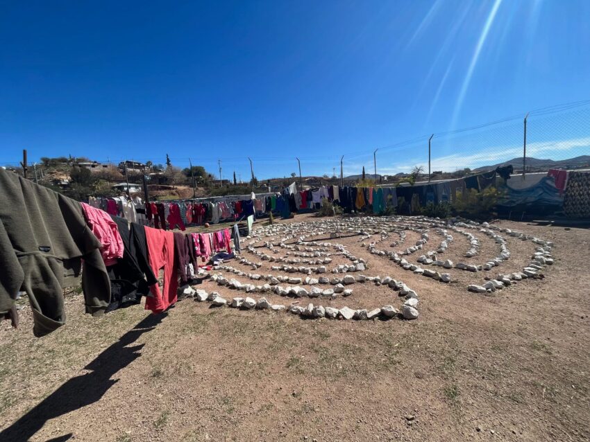 He showed me the radishes, the calabazas, the zanahoria. He showed me what remained of the tomatoes and chiles that got blasted by the cold. He showed me the lombrices, earthworms burrowing in the composting soil topped with banana peels. As he showed me all the plants, Tomás talked about how much he loved farming, how much he loved planting seeds, how much he liked caring for these plants and watching them grow. In Guerrero he had tended his milpa (small parcel of land) of squash, beans, and corn every day. As he spoke, I tried to envision his rural mountain community; over the years I have met many campesinos, small farmers, across southern Mexico, in his state of Guerrero, in Oaxaca, in Chiapas. Having knelt in the soil of the milpas before, I understood how this small garden in Nogales was like a sanctuary, especially in the face of a scary situation, as Cristina and Tomás had told me, away from home, away from your roots, your child’s life in danger, wondering if you would get asylum. When they arrived six months earlier, they applied for asylum on the glitchy, confusing, and difficult-to-use CBP One app with the help of staff at the Casa, a service they offer to all people staying in the shelter. Tomás told me that when things got stressful, “I come here to the garden. And the stress goes away.” He made a motion with his hand. His hand then touched the soil, searching for the plants. He looked up, and his face was serene.